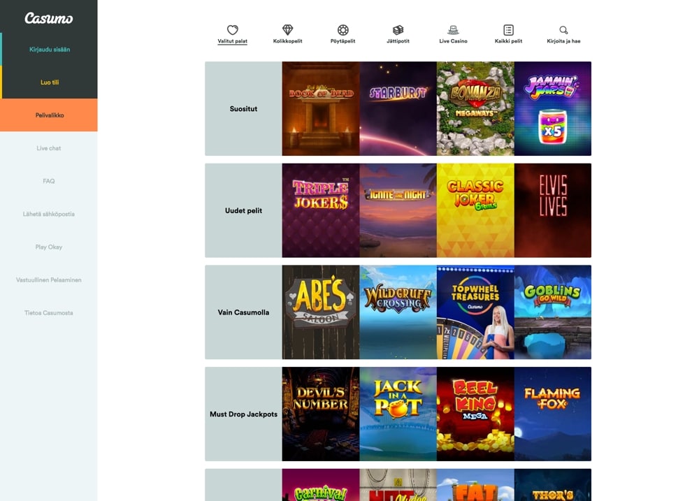 Casumo aukesi vuonna 2012 ja on jo yksi markkinoiden vakiintuneimmista nettikasinoista. Menestyksen syyt ovat selvät: ihanan mukava ulkoasu, reilu tervetuliaispaketti, turnaukset suurilla palkinnoilla, erittäin mukava asiakaspalvelu ja jännittävä konsepti, jossa voit nousta tasoilla ja voittaa kunnon palkintoja.