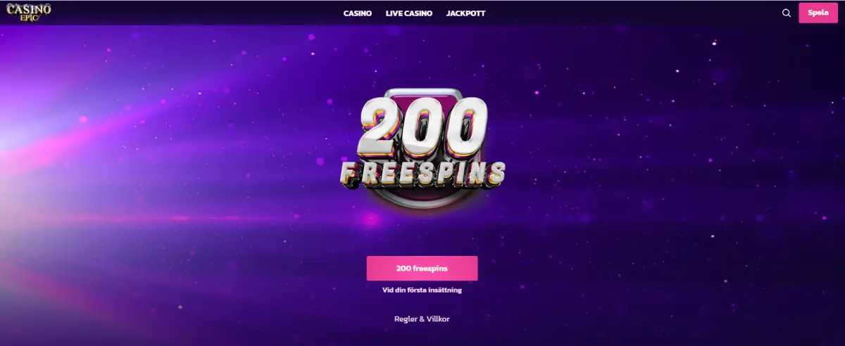 Ett säkert sätt att locka till sig nya spelare är att erbjuda välkomstbonus. Det har Casino Epic snappat upp – hos dem har du chans att få 200 free spins vid din första insättning.