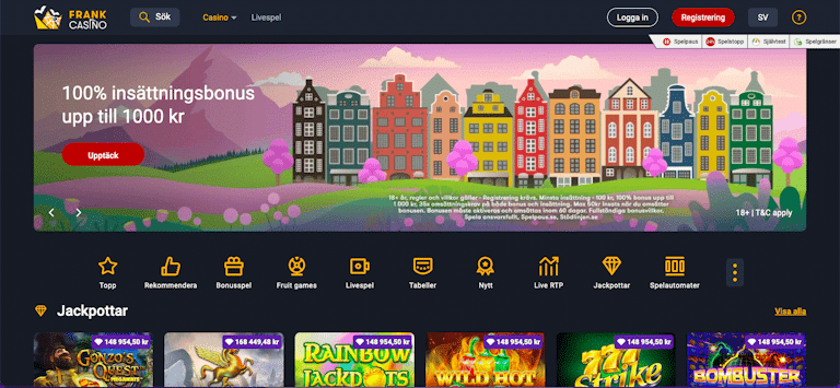 Frank Casino är ett casino som haft svensk licens sedan 2020. Vid första anblick bockar de av de flesta kraven – en modern hemsida, tusentals spel, välkomsterbjudande för nya spelare och så vidare.
