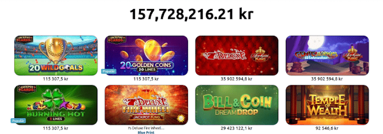 När du klickar dig in på “Jackpottar” hos Winlandia kommer du att mötas av en räknare som sticker upp i flera miljoner. Den anger är hur stor den sammanlagda jackpotten hos casinot är för tillfället!
